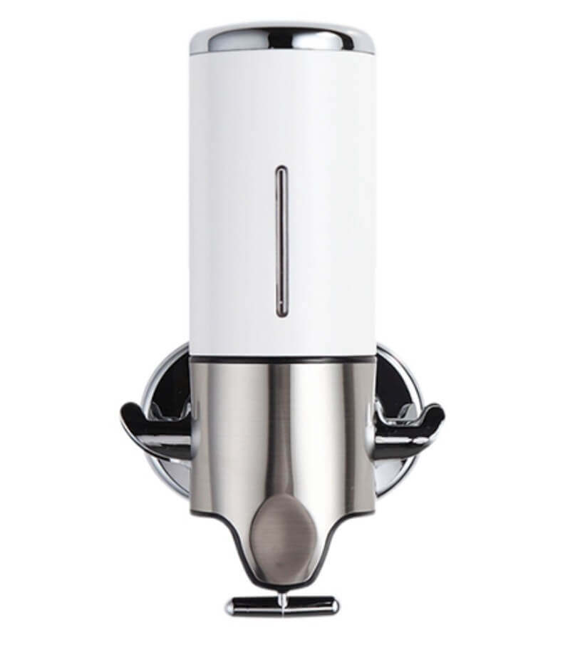 Корпус изготовлен из нержавеющей стали с сатинированной и глянцевой отделкой, а также белого ABS-пластика, что обеспечивает долговечность и стильный внешний вид. Устройство оснащено механическим рычажным механизмом подачи мыла и замком для предотвращения несанкционированного доступа. Устанавливается на стену с помощью шурупов или силикатного клея.