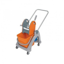 Тележка укомплектована ведром на 25 литров и дополнительным ведром на 6 литров, что позволяет разделять чистую и грязную воду. Встроенный отжим для мопов значительно упрощает процесс уборки и экономит время.