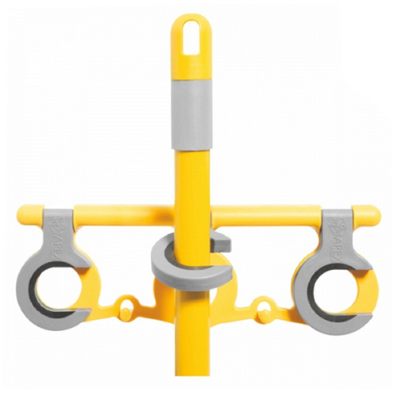 - Универсальность. Подходит для хранения различных рукояток, швабр и тростей (до 3 единиц), а также для подвешивания тряпок или мопов (до 2 единиц).