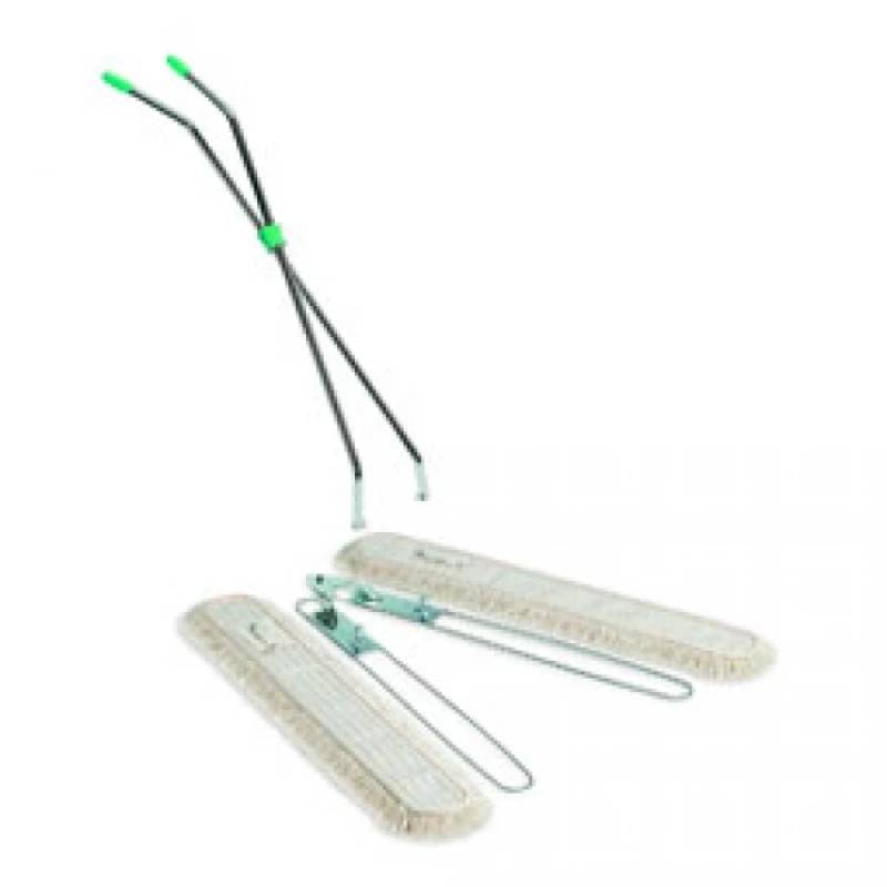 Основа для V-образной швабры – это прочная и функциональная рамка, созданная для сухой уборки пыли на больших площадях. Изготовлена из оцинкованной стали, что обеспечивает долговечность и устойчивость к износу. Конструкция состоит из двух рамок длиной по 100 см каждая, которые соединены с одной стороны, образуя угол 140°. Широкий угол разворота и большой охват делают её для уборки сцен, залов и других крупных помещений.