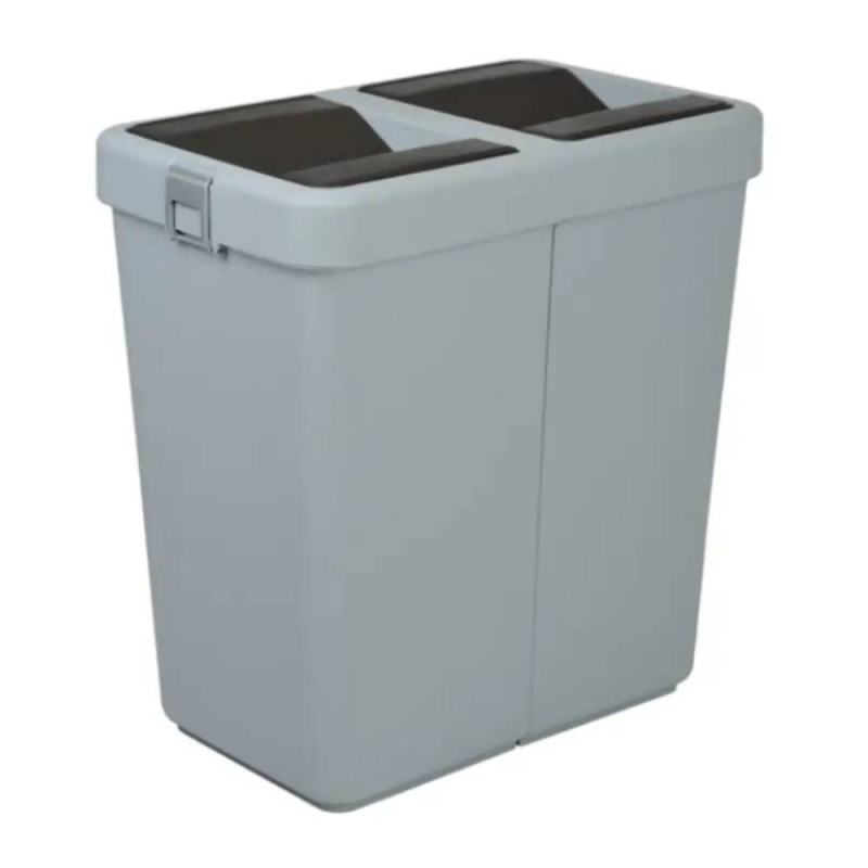 Мусорное ведро двойное 14+14 л пластиковое, с поворотной крышкой серое COB-428 – это современное и практичное решение для сортировки мусора. Двойное ведро объемом 28 литров (по 14 литров на каждое отделение) позволяет удобно разделять отходы, обеспечивая чистоту и упрощая процесс утилизации.