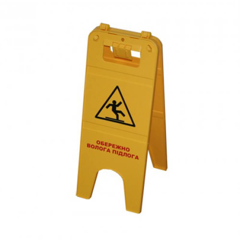 Знак "Осторожно, мокрый пол" помогает снизить риск травм, обозначая зоны с влажным полом. Универсальный двусторонний дизайн с надписями на украинском и английском языках делает его удобным для использования в любых помещениях.