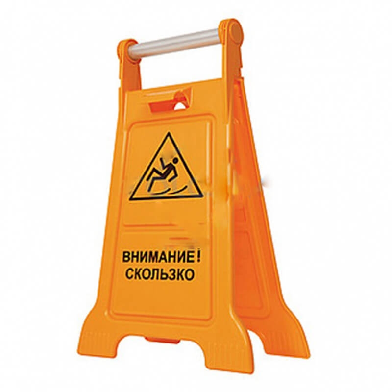 Применение: Табличка используется во время уборки или при возникновении скользких поверхностей в зонах с высокой проходимостью: офисы, торговые центры, гостиницы, рестораны, производственные помещения и т.д. Компактность позволяет удобно хранить изделие, а прочные материалы гарантируют долгий срок службы.