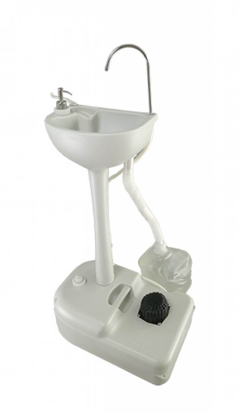 - Лёгкость в транспортировке: умывальник оснащён двумя колёсами для удобного перемещения.
