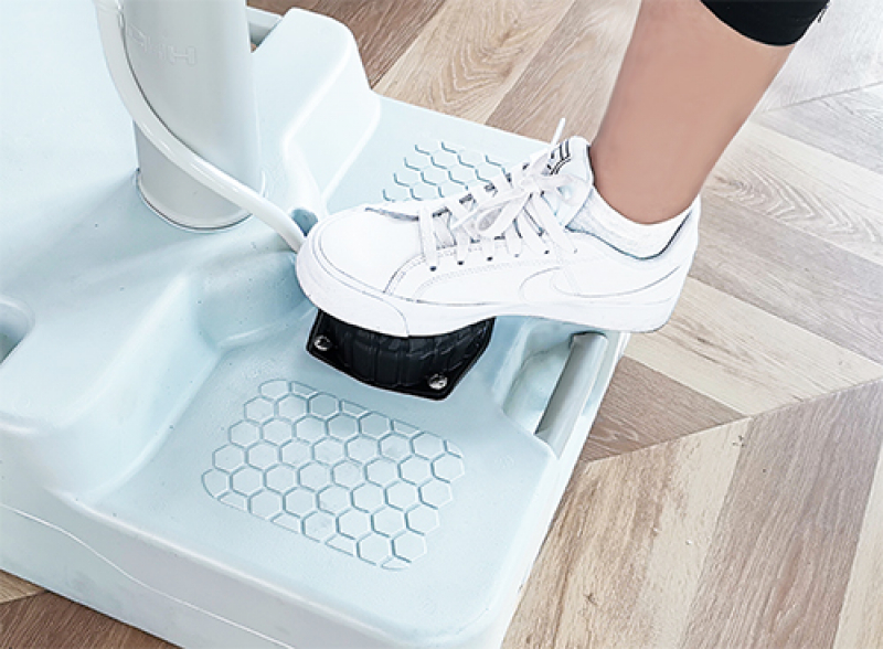 - Надежная ножная помпа обеспечивает удобную подачу воды без необходимости касания рук, что улучшает гигиену.