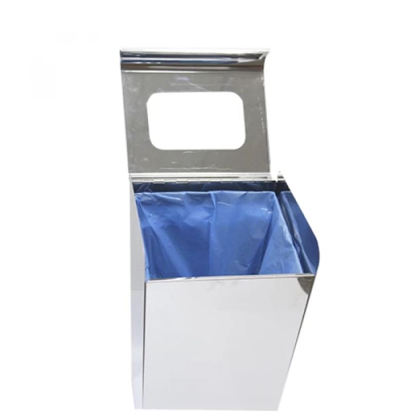 Урна для мусора 57 л S-LINE M157S – это стильная и практичная урна, выполненная из сатинированной нержавеющей стали, которая придает ей современный и элегантный вид. Урна оснащена несъемной крышкой и рамкой для крепления мусорного мешка, что обеспечивает удобство эксплуатации. Окно для мусора (220х120 мм) позволяет пользователям легко выбрасывать отходы, не соприкасаясь с внутренней частью урны. 4 противоскользящие ножки на дне предотвращают перемещение урны и обеспечивают её стабильность на различных поверхностях.