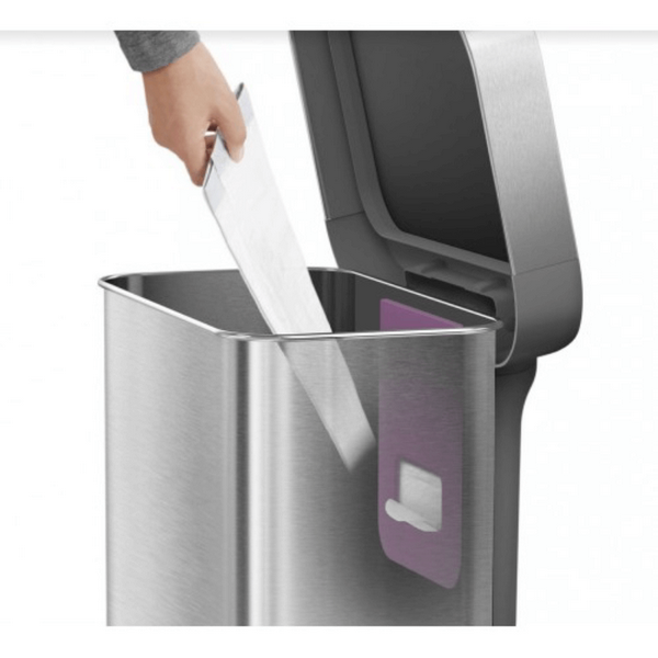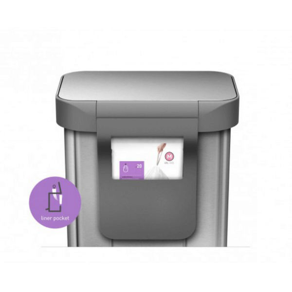Особенностью этой урны является встроенный карман для хранения запасных мешков, что значительно ускоряет их замену. Обод из нержавеющей стали фиксирует мусорный мешок внутри, скрывая его и создавая эстетичный вид. Отсутствие внутреннего ведра позволяет использовать больше пространства для мусора.