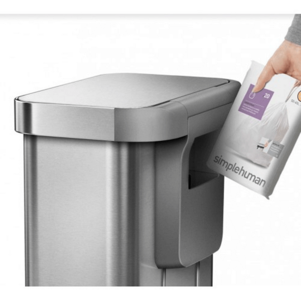Ключевой особенностью урны является встроенный карман для хранения запасных мешков, что значительно упрощает их замену. Обод из нержавеющей стали удерживает мешок внутри, скрывая его и сохраняя эстетичный вид. Благодаря отсутствию внутреннего ведра, урна предлагает больше пространства для мусора.