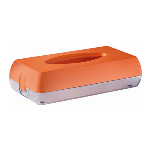 Держатель салфеток косметических COLORED A68700AR — это стильный и удобный аксессуар, выполненный из ударопрочного ABS-пластика с покрытием оранжевой краской "Soft Touch". Такое покрытие создает эффект прорезиненной поверхности, улучшая тактильные ощущения и защищая корпус от повреждений.