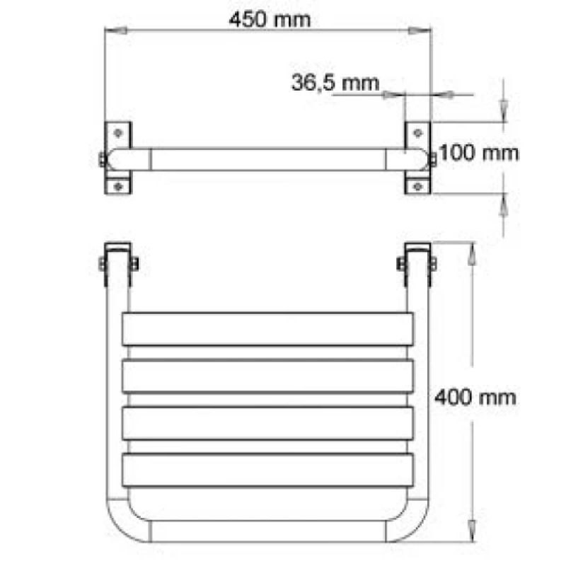 Виготовлене з нержавіючої сталі товщиною 1,7 мм, сидіння витримує навантаження до 120 кг, стійке до окислення й легко очищується. Компактний дизайн дозволяє економити простір, а відкидна конструкція робить використання максимально зручним.