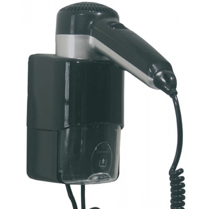 Пристрій оснащений двома швидкісними режимами, що дозволяє обрати оптимальний рівень потоку теплого повітря. Настінний монтаж економить простір, а вбудована розетка з перемиканням напруги (115 або 220 В) робить фен ще більш функціональним.