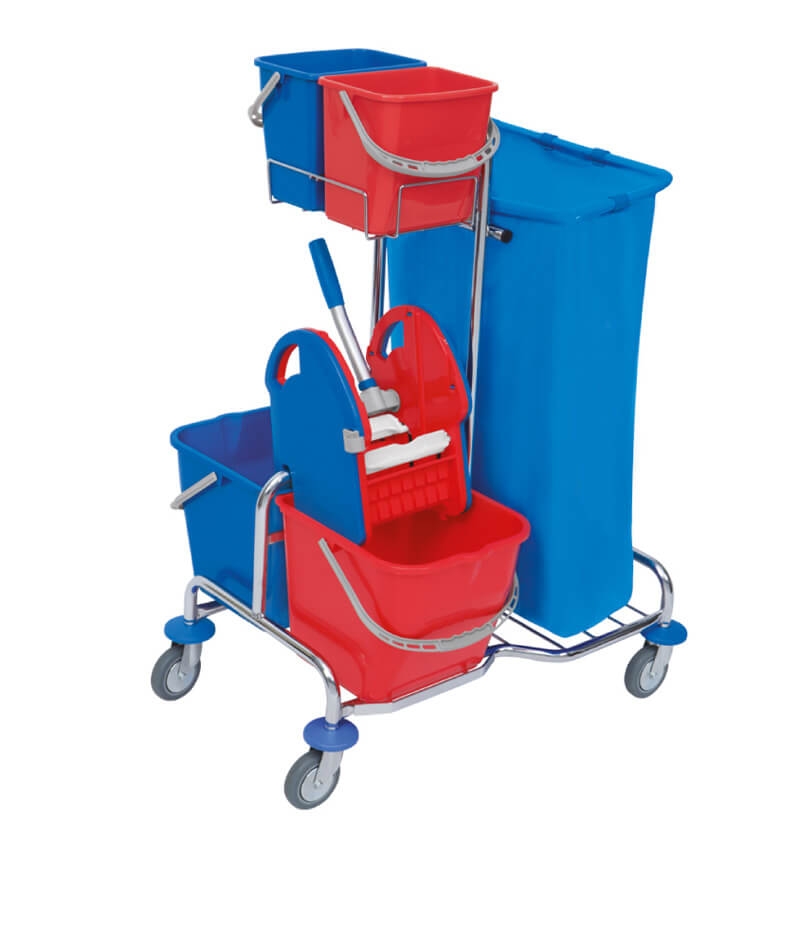 Візок 02.20.120.KW.CH підходить для прибирання в офісах, торгових центрах, готелях, медичних закладах та інших комерційних об’єктах. -