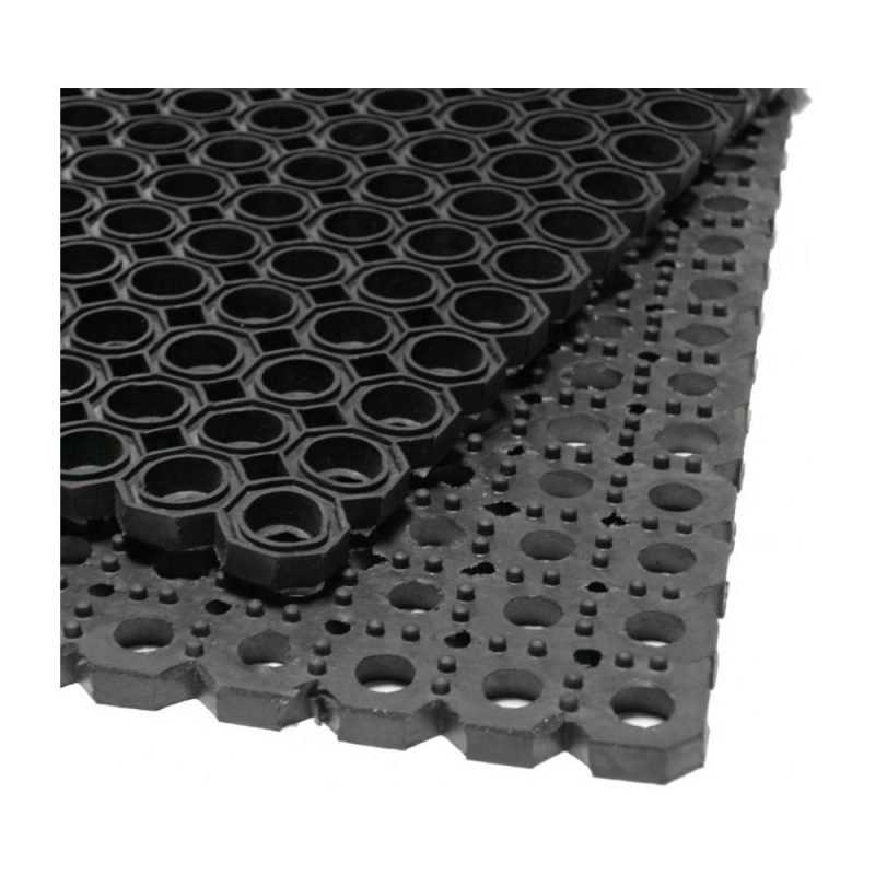 Килимок виготовлений із високоякісної гуми, що забезпечує його стійкість до зношування навіть при інтенсивному використанні. Його розміри підходять для вхідних зон, терас, коридорів та інших місць із високою прохідністю.