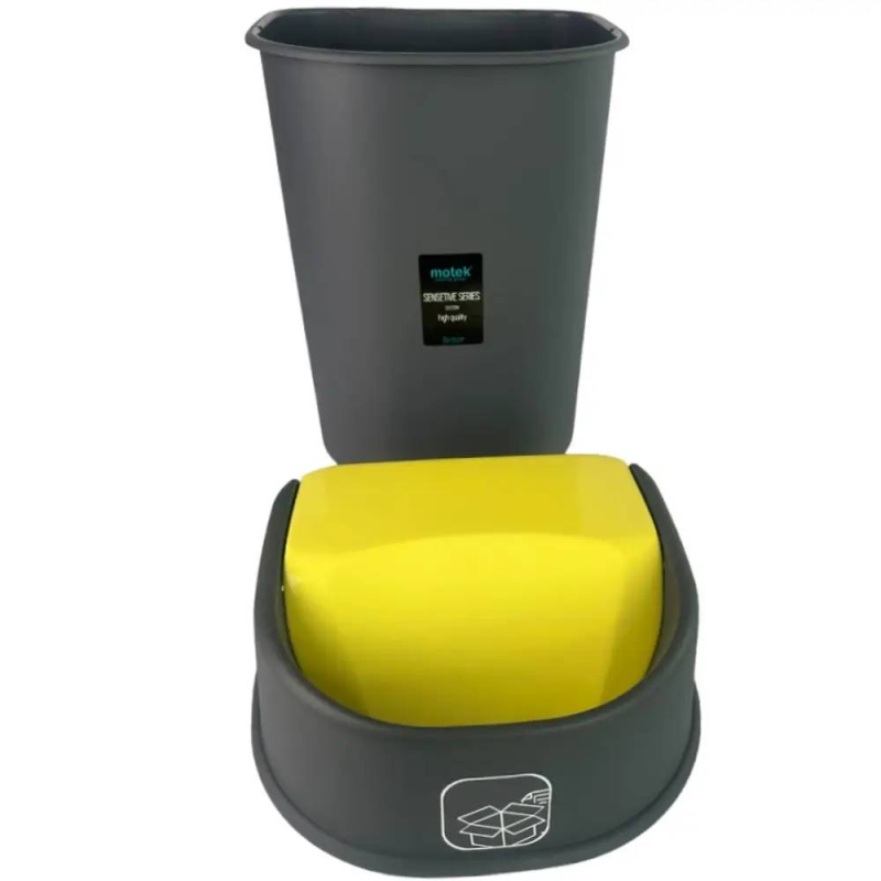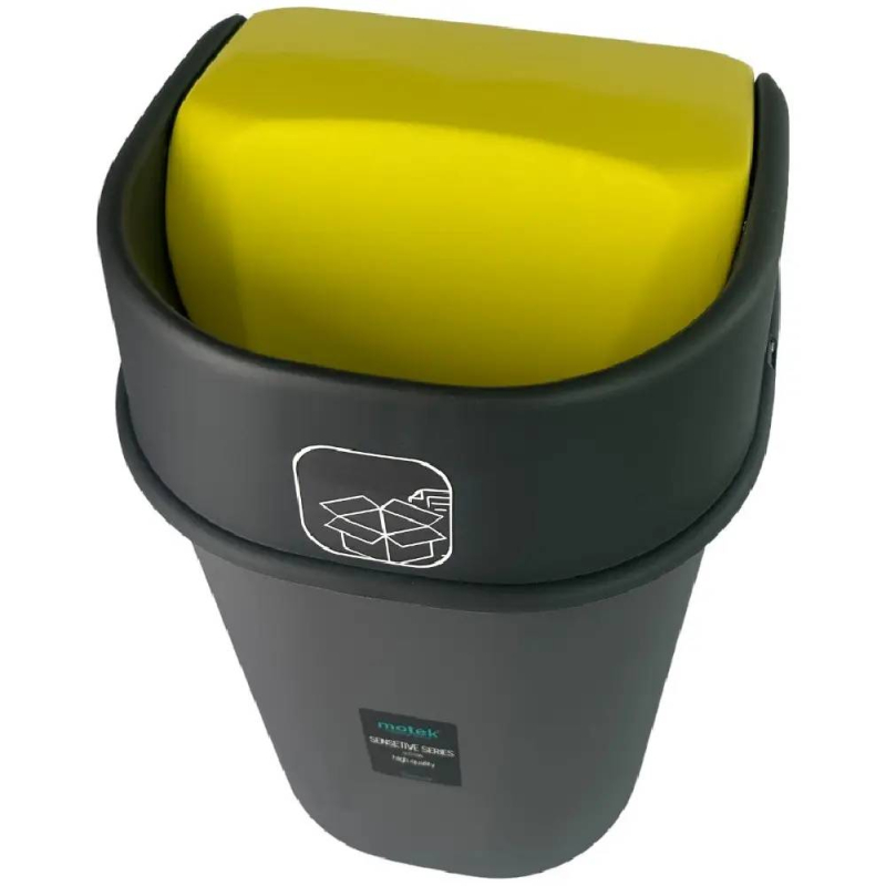 - Функціональна кришка: опускається всередину при легкому натисканні та автоматично повертається у вихідне положення. Яскраво-жовта кришка спрощує сортування сміття.