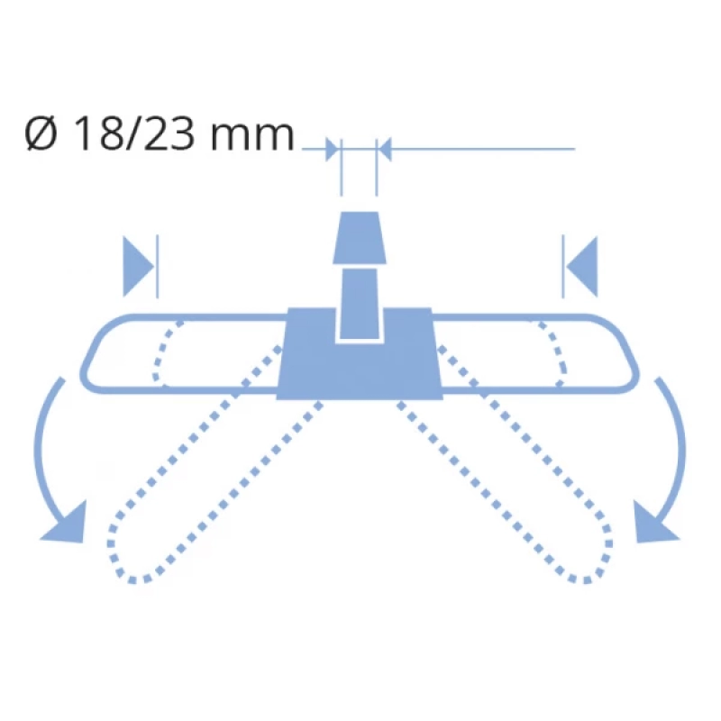 Основа мопа 100 см – це надійне та універсальне рішення для прибирання великих площ. Складна конструкція виконана з хромованого металу із шарнірним з’єднанням із поліпропілену, яке забезпечує обертання на 360°. Зручне універсальне кільце дозволяє використовувати рукоятки будь-якого діаметра від 18 до 23 мм.