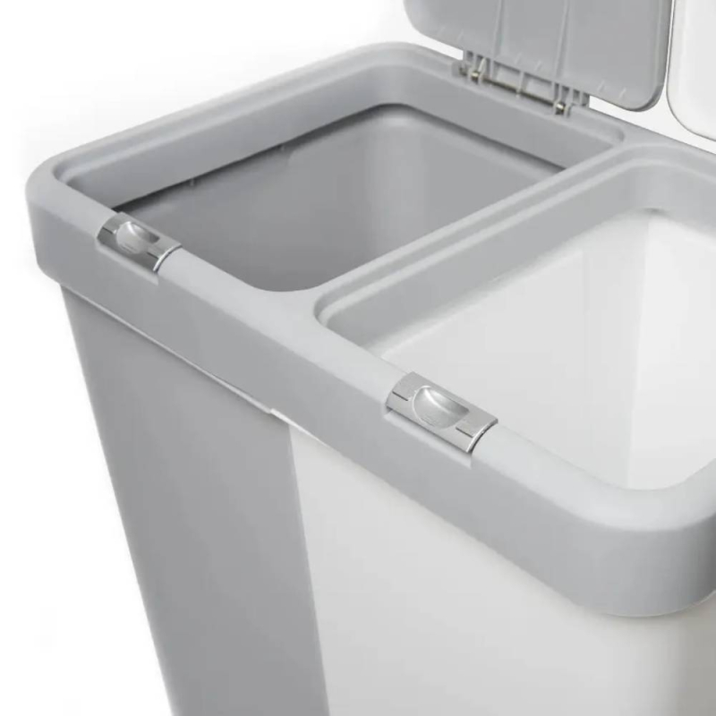 Кошик виготовлений із міцного пластику, стійкого до впливу вологи, який зберігає естетичний вигляд протягом тривалого часу. Автоматичне відкривання кришок забезпечує гігієнічність і зручність, а знімна кришка надійно закриває кошик.