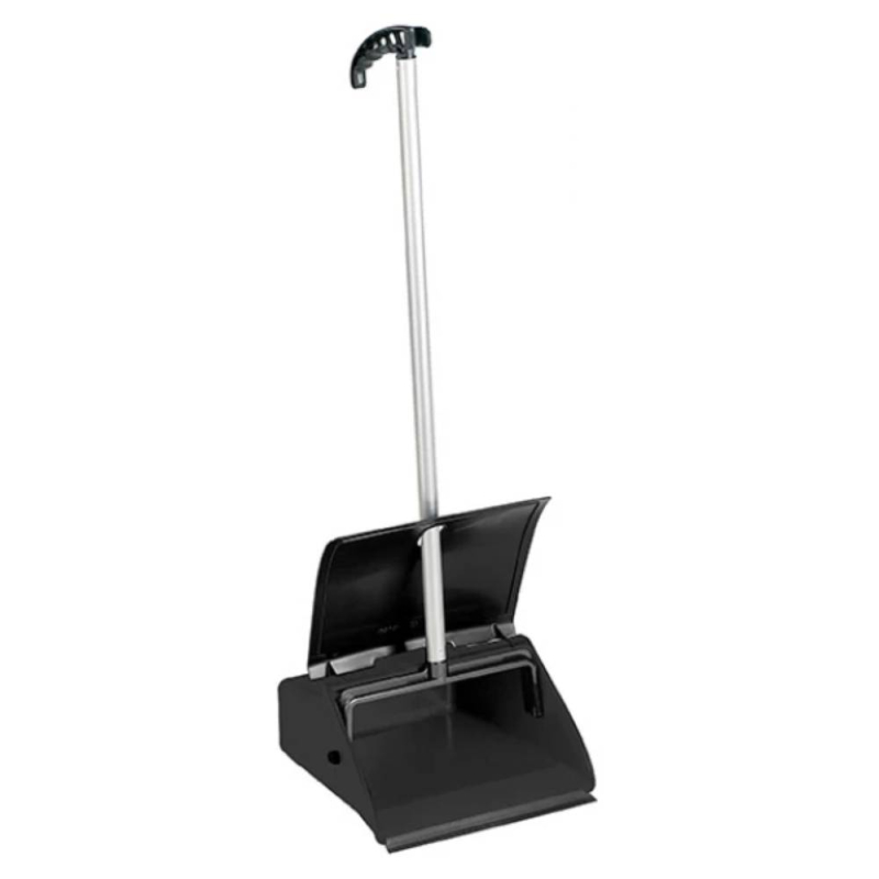 Кришка совка запобігає випаданню зібраного сміття під час перенесення. Поворотна конструкція дозволяє легко приводити совок у вертикальне положення для зручного зберігання та використання. Ручка з алюмінію має ергономічну форму, що забезпечує комфорт під час роботи.