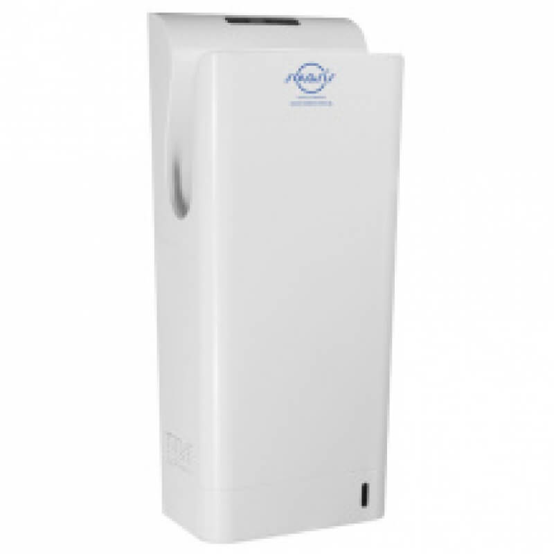 - Сушарка для рук, зроблена з ударопрочного пластику, виконана в білому кольорі.