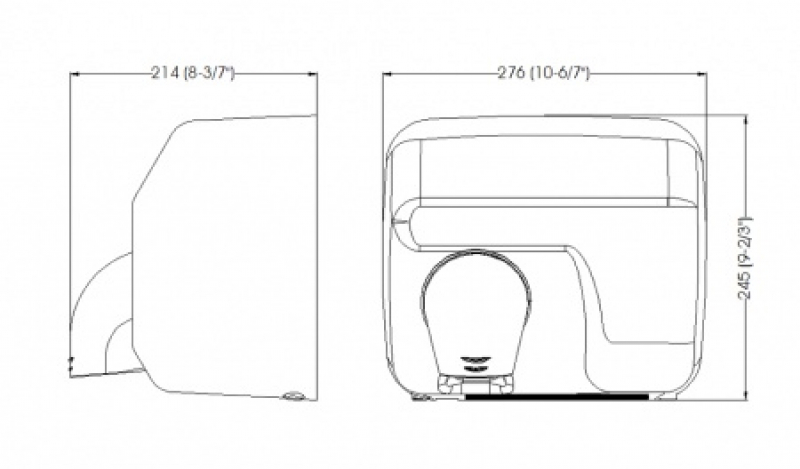 - Висока продуктивність. Потужність 2250 Вт і швидкість повітряного потоку до 100 км/год забезпечують швидке висихання рук за 29 секунд.