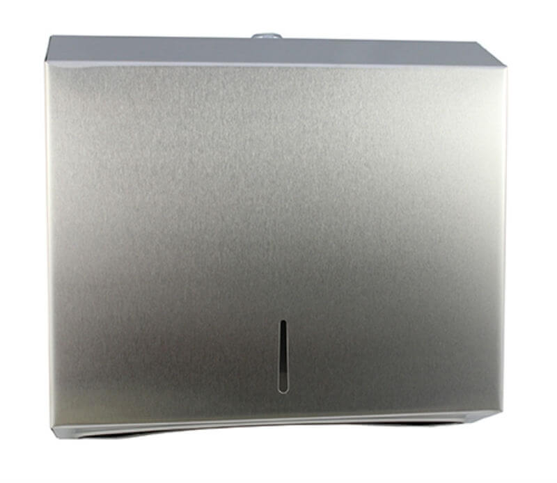 Тримач паперових рушників ZG-1405S виготовлений із сатинованої нержавіючої сталі марки AISI 304, що забезпечує його довговічність, ударостійкість та стильний вигляд. Цей аксесуар ідеально підходить для місць із великою прохідністю, таких як навчальні заклади, спортивні та медичні центри, торгові комплекси, готелі й ресторани.