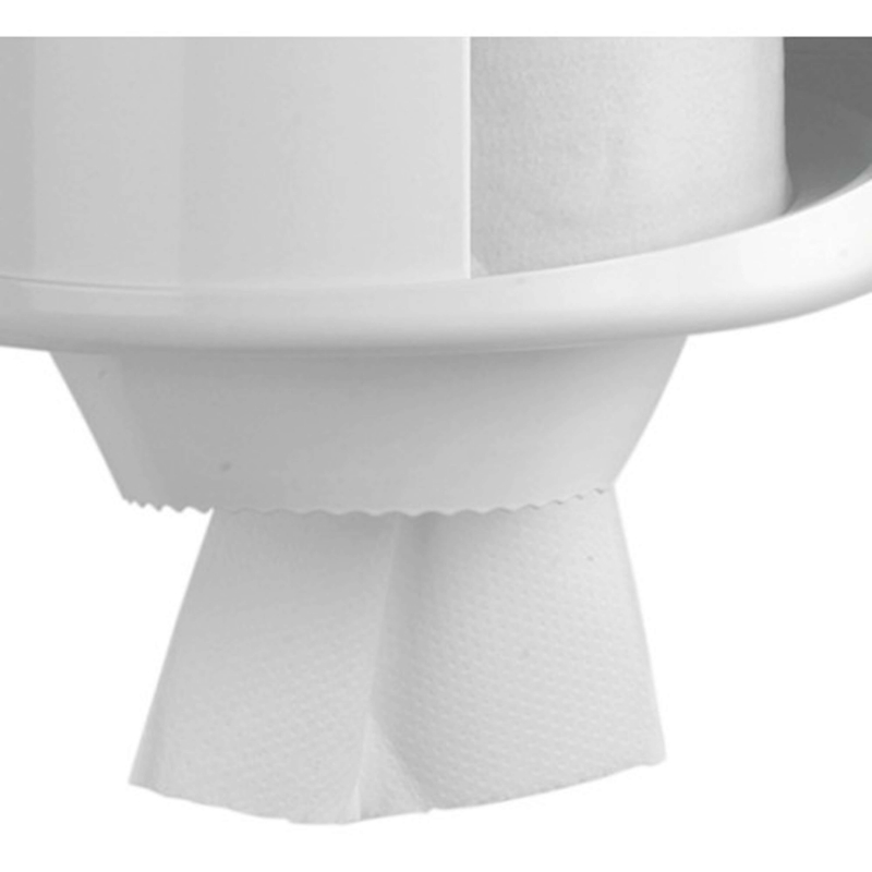 Антивандальна конструкція робить цей тримач ідеальним для місць із високою прохідністю. Підтримує рулони з витяжною гільзою діаметром до 250 мм, що робить його зручним для використання в ресторанах, поліклініках, лабораторіях, спортивних клубах та інших громадських закладах.