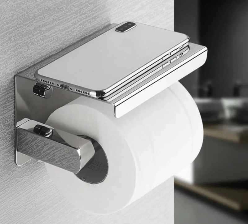 - Функціональна полиця: дозволяє зручно розміщувати мобільний телефон, запасний рулон паперу, серветки або інші дрібні предмети.