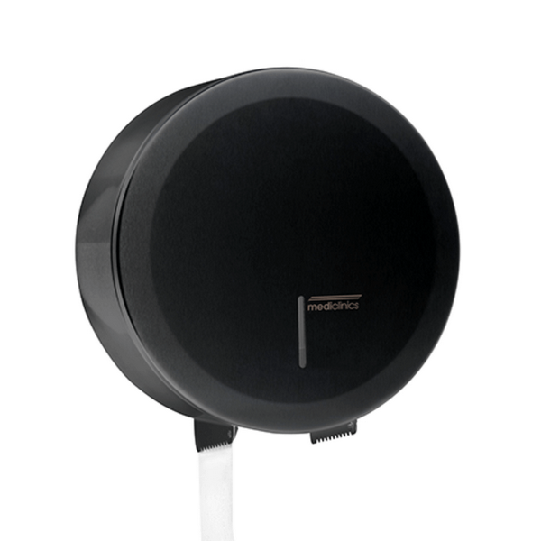 Тримач туалетного паперу JUMBO INDUSTRIAL PR2783B – стильний і надійний аксесуар для розміщення промислових рулонів Джамбо. Корпус виконаний зі сталі, покритої чорною епоксидною фарбою, що надає виробу антивандальні властивості та сучасний вигляд.