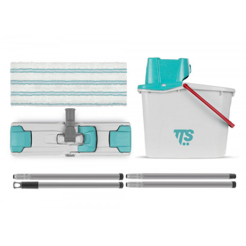 Комплект Uni Junior System від італійського виробника TTS створений для високоефективного напівпрофесійного прибирання горизонтальних і вертикальних поверхонь. Комплект включає відро об'ємом 14 літрів із ручкою червоного кольору, механізм для віджимання, основу Uni, моп Soft Band із мікрофібри довжиною 35 см і металеву рукоятку довжиною 140 см.
