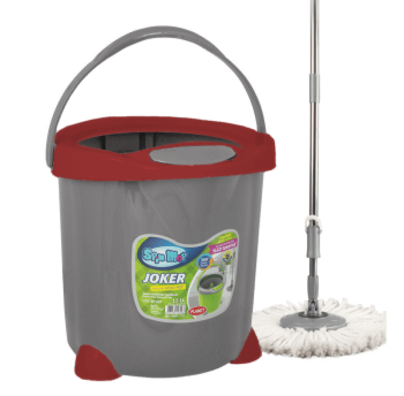 Набір для прибирання Planet Spin Mop Joker поєднує стильний дизайн, зручність і функціональність. Комплект включає відро об’ємом 15 л сірого кольору з червоними акцентами, металеву швабру та насадку зі 100% мікрофібри.