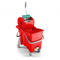 - Двосекційна конструкція: Ємності призначені для мийного розчину та для полоскання мопа, що забезпечує якісне та гігієнічне використання.