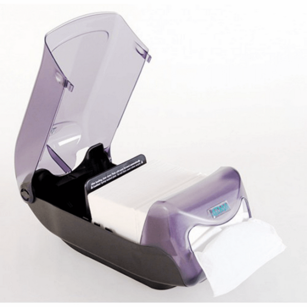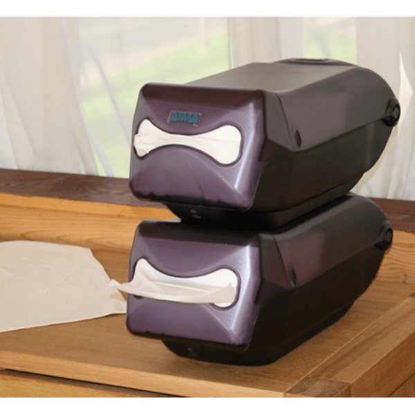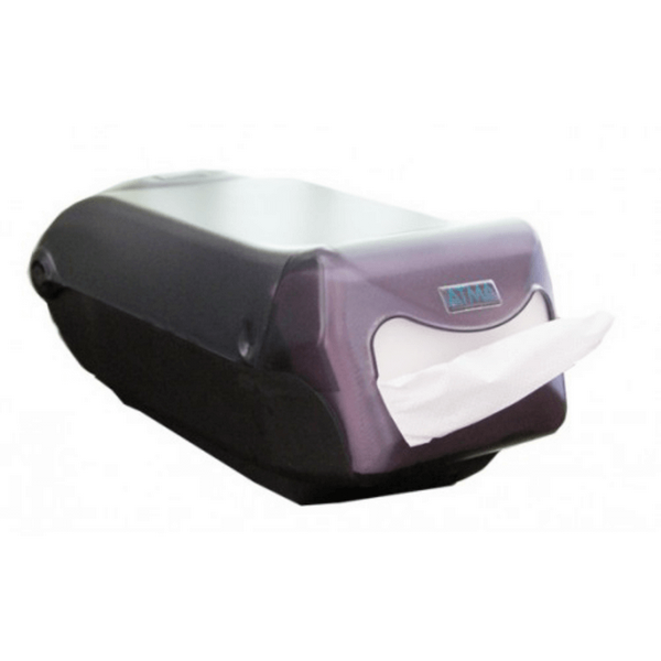 Напівпрозора кришка допомагає контролювати рівень серветок, а протиковзке покриття на дні забезпечує стійке положення на гладкій поверхні. Конструкція дозволяє встановлювати тримачі один на одного, економлячи місце на прилавку. Монорейкова система видачі забезпечує рівномірний та поштучний відбір серветок.