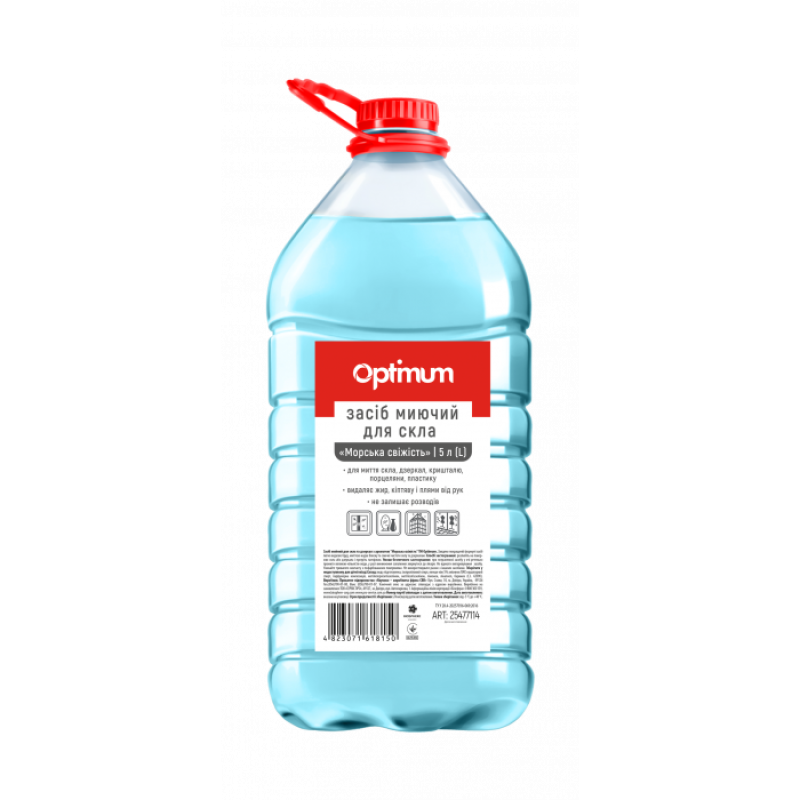 Засіб для миття скла "Морозна свіжість", 5 л – це універсальний продукт, розроблений для ефективного очищення скляних та гладких поверхонь від легких і середніх забруднень. Продукт підходить для віконного та автомобільного скла, дзеркал, кахлю, плит, холодильників та інших гладких поверхонь.
